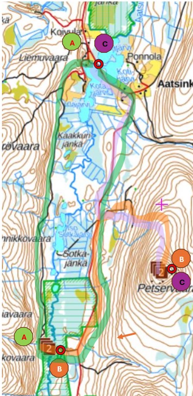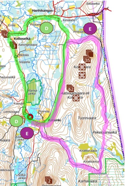E. Ympyräreitti 25 km: Mustajärvi-Kirakoiva-Pekelojanselkä-Kolvivaara-Mäntyvaara-Aatsinki-Mustajärvi